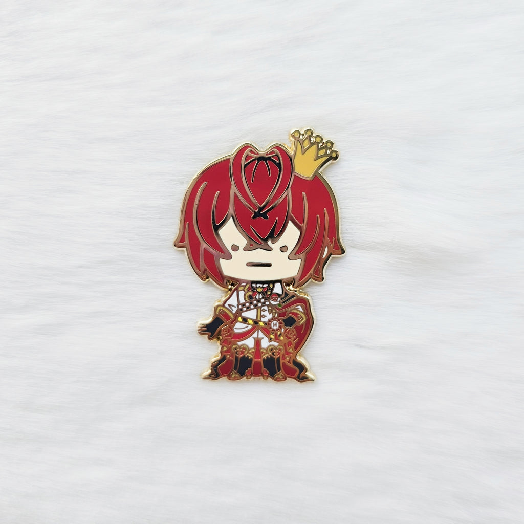 43 x 28.9 mmHard enamel pin with light gold coloured platingLogo on back with 2 rubber pin postsComes with backing card