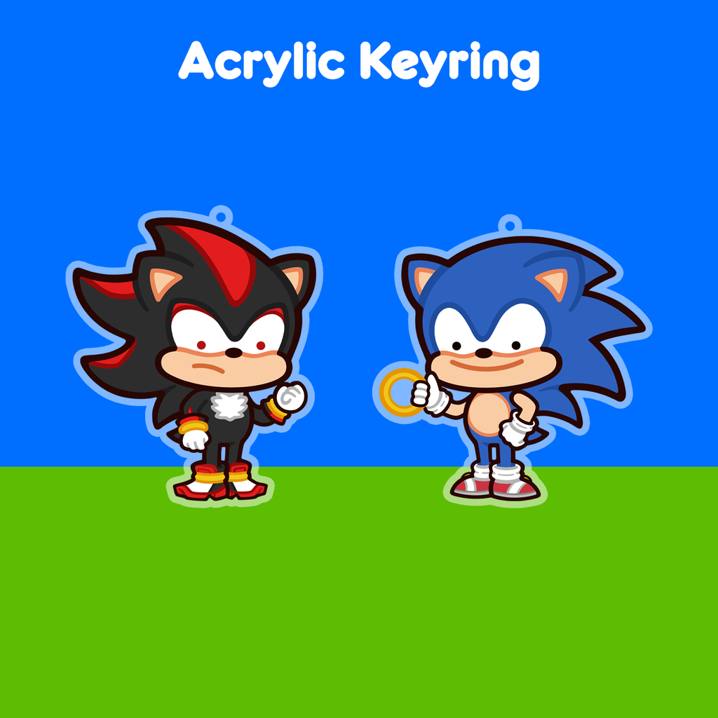 These keychains have double sided print with glitter epoxy on one side and regular acrylic on the other side. It has a gold coloured hoop attachment.